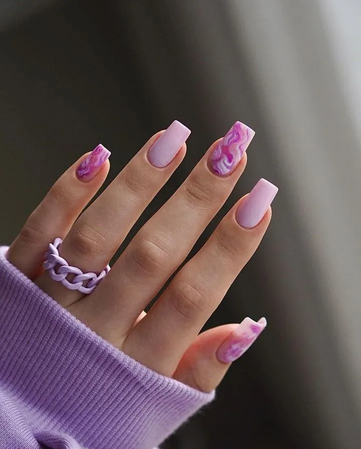 Soft and graceful, May Nail Ideas featuring pale purple nails add a gentle and dreamy essence. The pastel lavender shade pairs splendidly with either glossy or matte finishes, making it a flexible option. Adorned with delicate floral accents or kept simple, this manicure epitomizes a chic and feminine spring style.