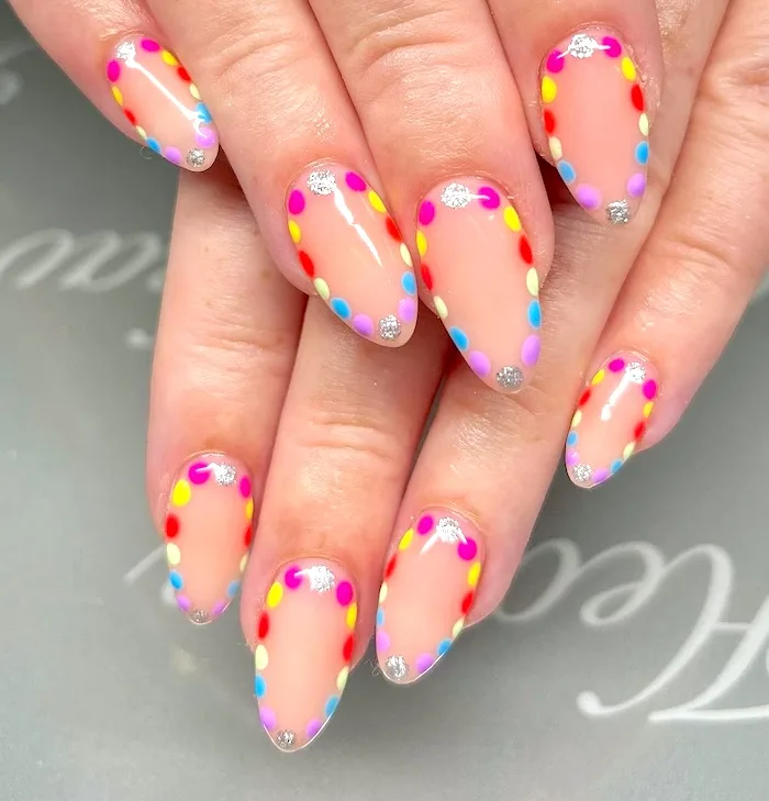 Introduce a playful and whimsical element to your manicure with May Nail Inspirations that showcase candy dot borders. Small, colorful dots aligned along the edges of your nails produce a vibrant and youthful impression. This amusing design is a perfect way to celebrate delicate pastel tones while keeping the atmosphere light and joyful.