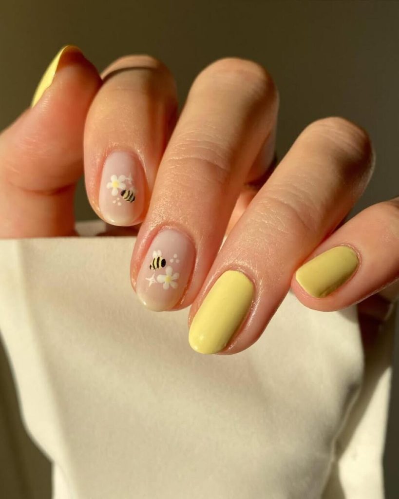 12. Bee Design and Yellow Nails