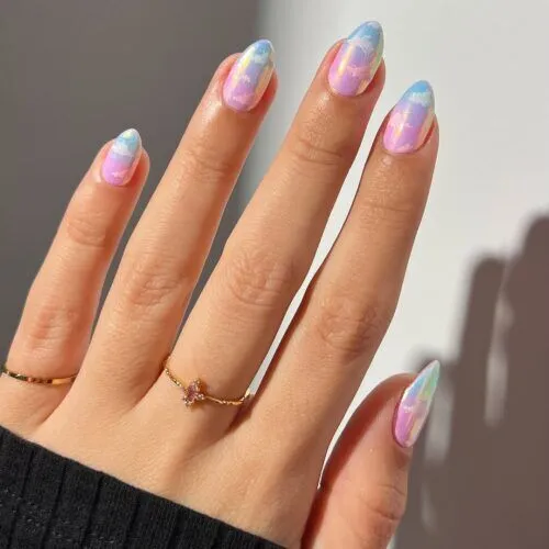 Gentle and ethereal, pastel cloud nails evoke a calm and delicate ambiance in spring manicures. The light and airy design makes these charming spring nails perfect for a fresh and trendy appearance. This manicure encapsulates the essence of springtime beauty.