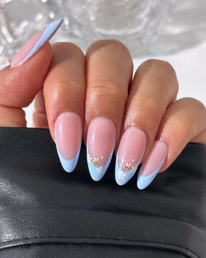 A chic and contemporary interpretation of spring nails, blue-tipped sophistication showcases understated color highlights at the tips. The fresh and classy aesthetic makes these charming spring nails suitable for any event. The streamlined design presents a revitalized and refined appearance to your manicure.