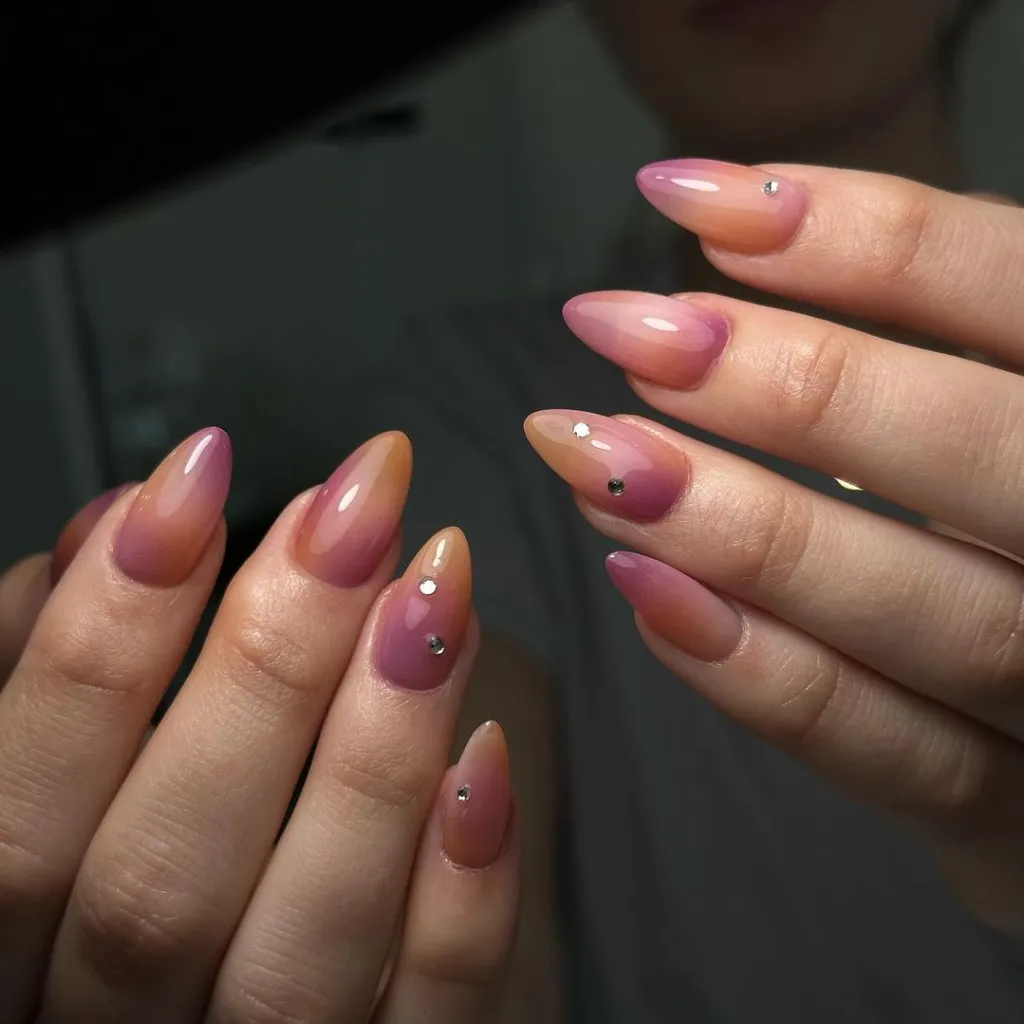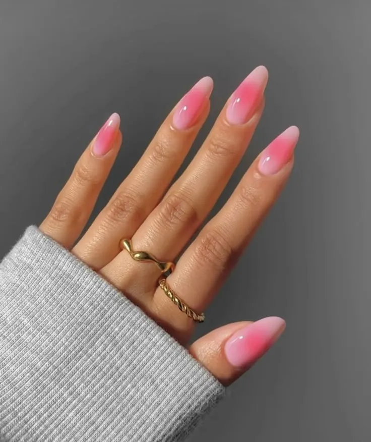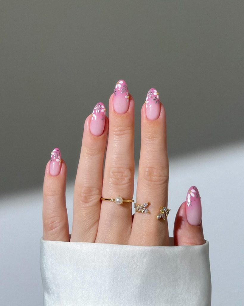 A fashionable and ethereal option, pink aura nails showcase a luminous, airbrushed effect that gracefully faded at the edges. The gentle mixing of hues provides a magical and contemporary attraction, making them essential for charming spring nails. This design is ideal for anyone who adores a subtle yet striking appearance.