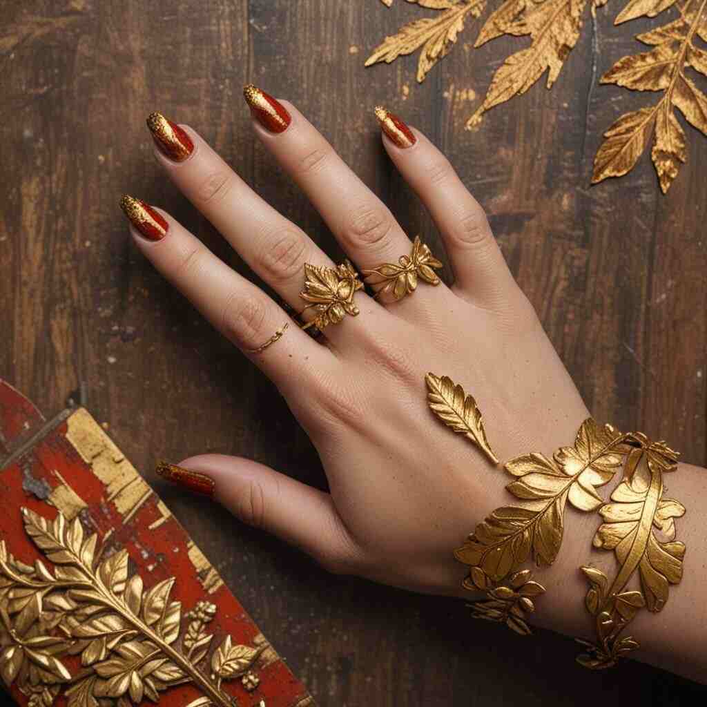 10. Rusty Red with Golden Leaf Accents