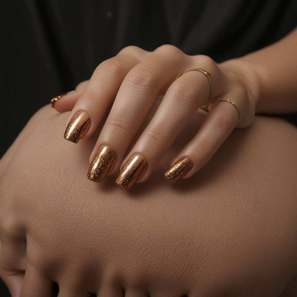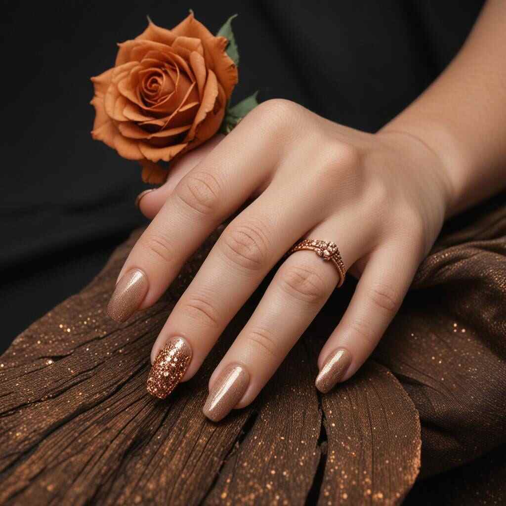 9. Copper Sparkle Fall Dip Nails