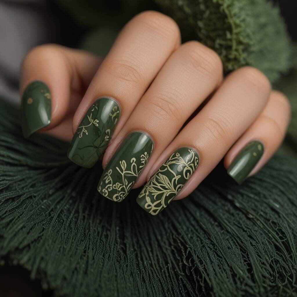 14. Moss Green with Leaf Patterns
