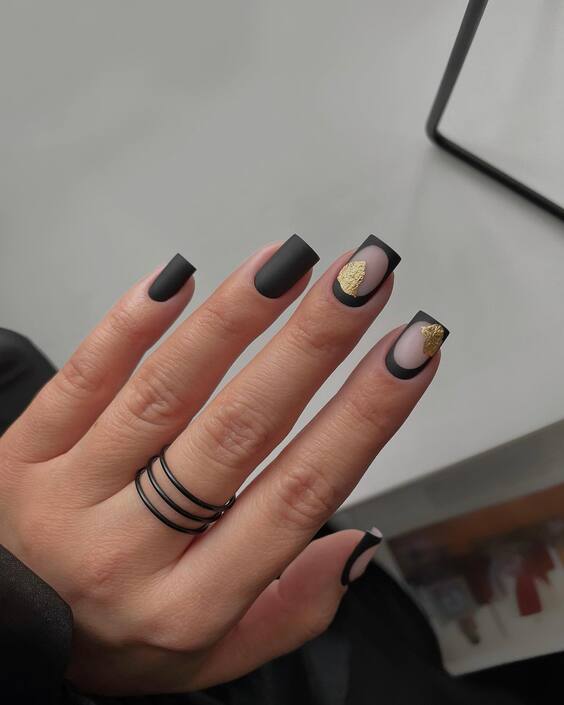 23. Matte Noir Elegance with Gold Leaf Details