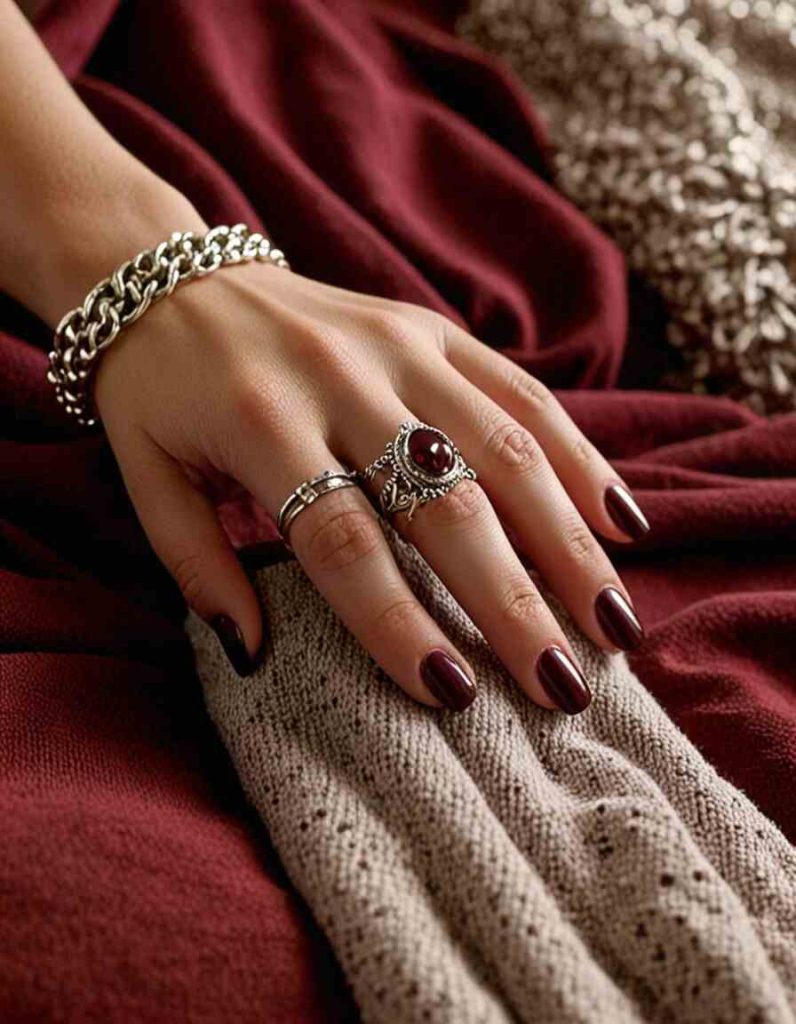 2. Burgundy Fall Dip Nails