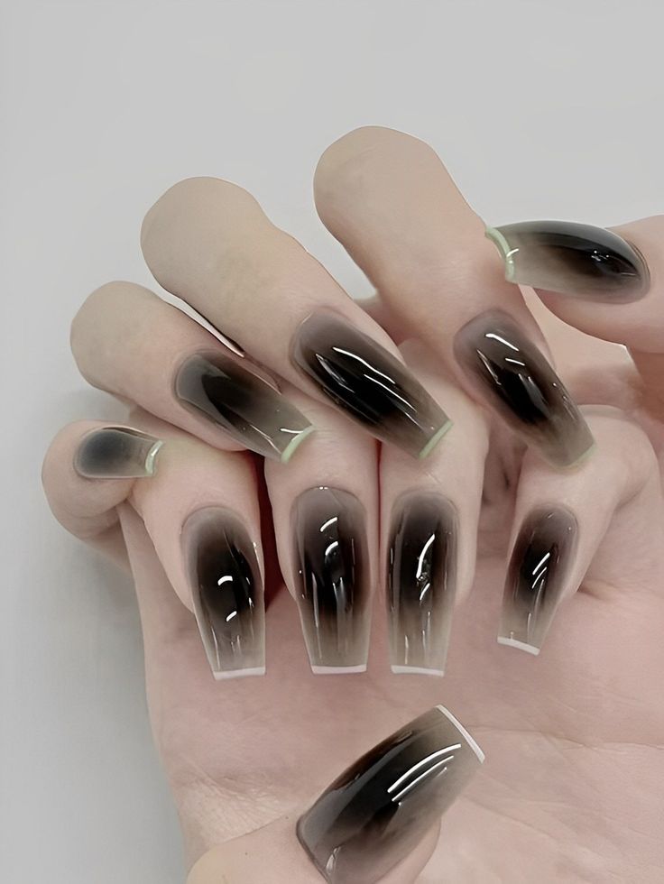 Achieve a striking effect with Deep Black to Gunmetal fall dip nails, transitioning seamlessly from dark to metallic. This bold color change is suited for those desiring a daring, modern look. The gunmetal finish imparts a sleek and contemporary flair to your autumn style.