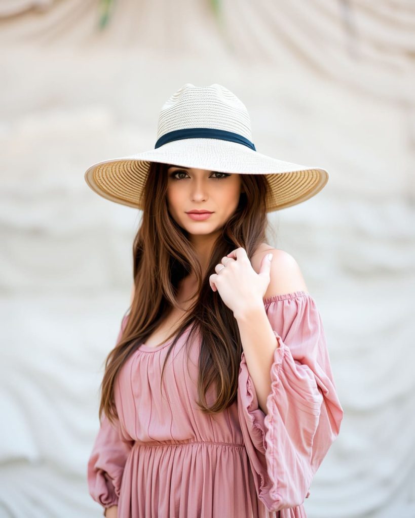 A wide-brim hat coupled with a flowing dress injects a hint of bohemian flair into any night out. This casual yet refined pairing makes it one of the most distinctive and appealing going out outfits for a laid-back evening.