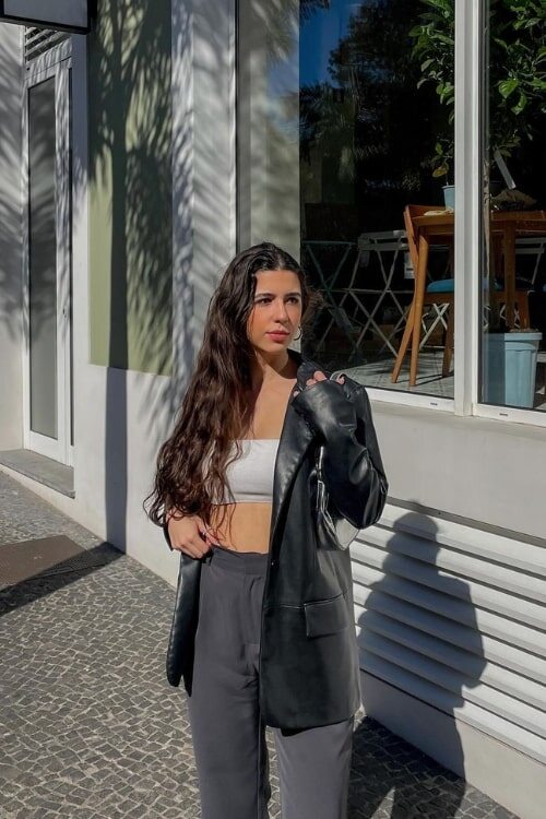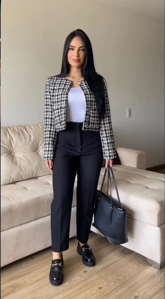 13. Stylish Cropped Jacket with Black Pants
