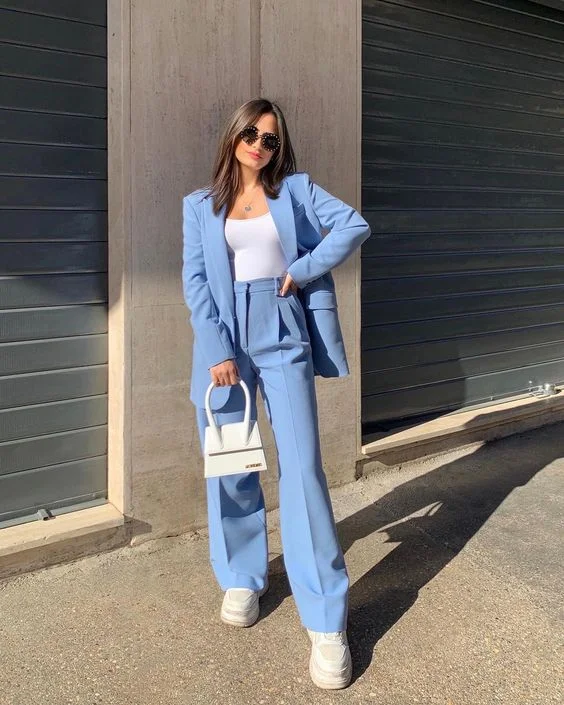 A stylish navy blazer accompanied by white pants creates a striking and sophisticated interview outfit. The navy blazer brings a touch of elegance, while the white trousers ensure a clean and polished finish. This combination is perfect for conveying a refined and professional persona.