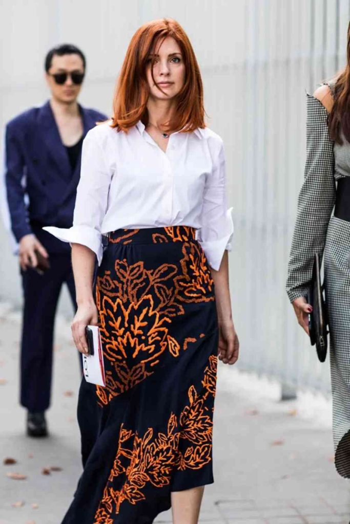 11. Sharp White Shirt with Navy Skirt