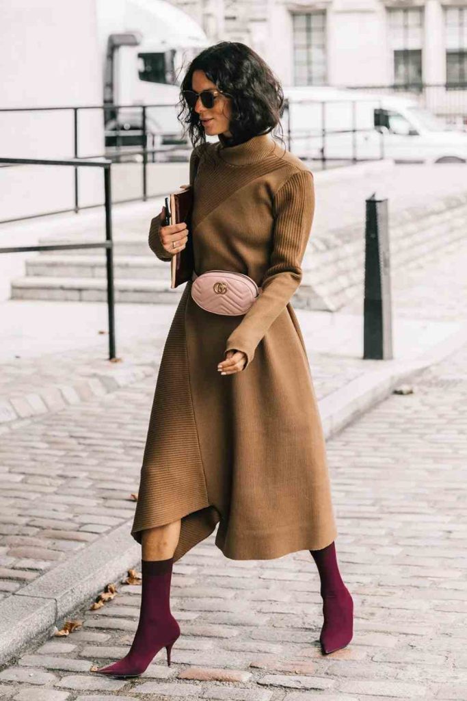 30. Camel Sweater with a Pleated Midi Skirt