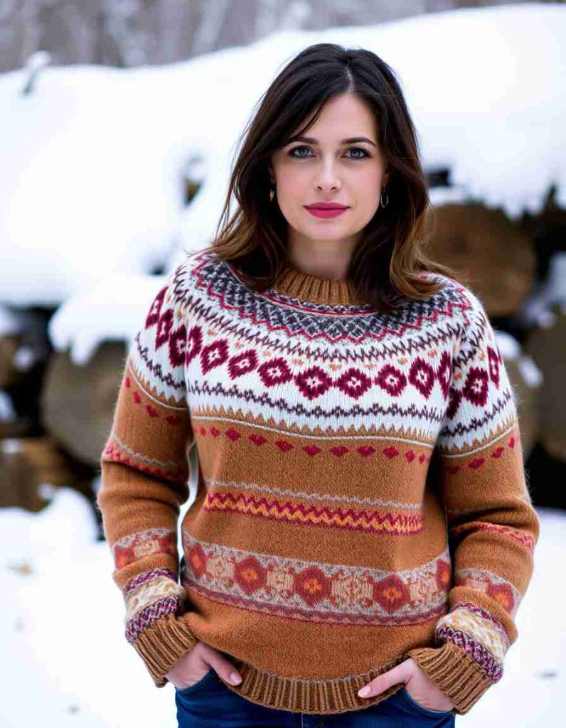 Fair Isle pullover winter garments make a festive choice with their classic knitted designs. They are perfect for snuggling by the fire or participating in outdoor winter activities.