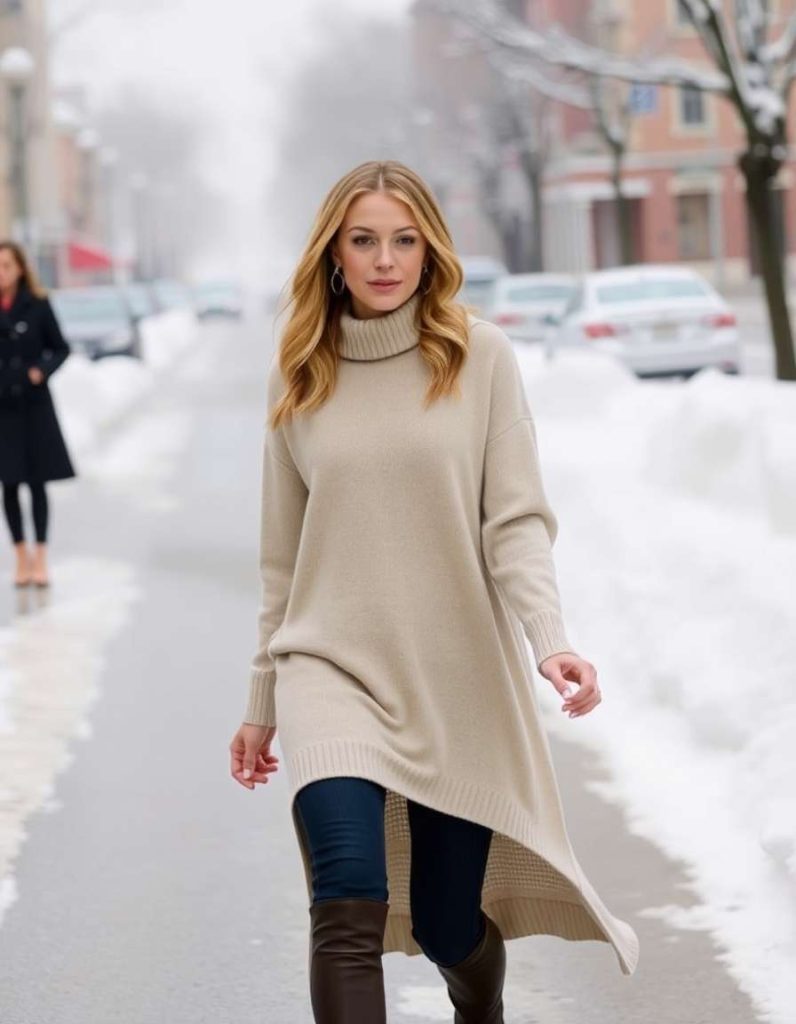 Turtleneck winter sweaters are a classic choice for both warmth and style. The high-neck design not only keeps you warm but also brings an air of sophistication to your ensemble. These sweaters pair wonderfully with trousers or skirts for a refined winter appearance.