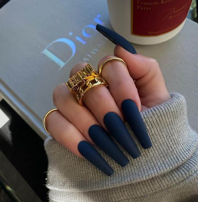 Timeless fall matte nail colors are centered on encapsulating the essence of autumn through profound, luxurious shades. Dark burgundy, pine green, and navy are iconic fall colors that appear breathtaking with a matte texture. These shades not only amplify the seasonal vibe but also inject an element of elegance into your ensemble. Combining these classic tones with a matte finish delivers a sophisticated and polished touch that is perfect for any fall gathering, from intimate get-togethers to upscale occasions.