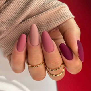 Ombre Pinks fall matte nails showcase a gradient of soft pink shades with a sleek matte finish. This understated design adds a hint of grace and femininity to your autumn presence. Ideal for those who favor a gentle, yet fashionable seasonal manicure.