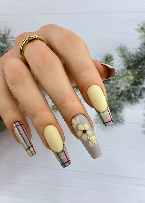 Classic Plaid Elegance fall matte nails feature a timeless plaid design with a refined matte texture. This style intertwines classic autumn shades with a sophisticated touch, perfect for introducing a traditional elegance to your fall ensemble.