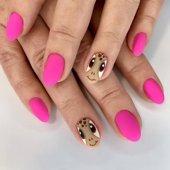 Whimsical Pink Matte with Fawn Highlights fall nails unite a gentle pink base with charming fawn accents. This distinctive design injects a playful flair into your autumn manicure, perfect for those who appreciate a fun and fashionable seasonal appearance.