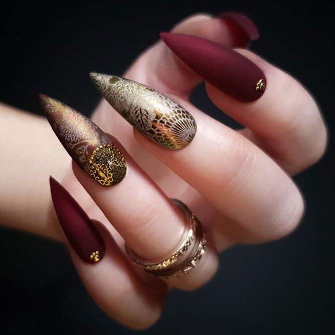 Rich and opulent, Matte Burgundy fall nails present a deep burgundy hue with a refined matte finish. This color captures the essence of autumn sophistication, making it an ideal option for formal events or everyday chic. Enhance your fall aesthetic with this gorgeous shade.