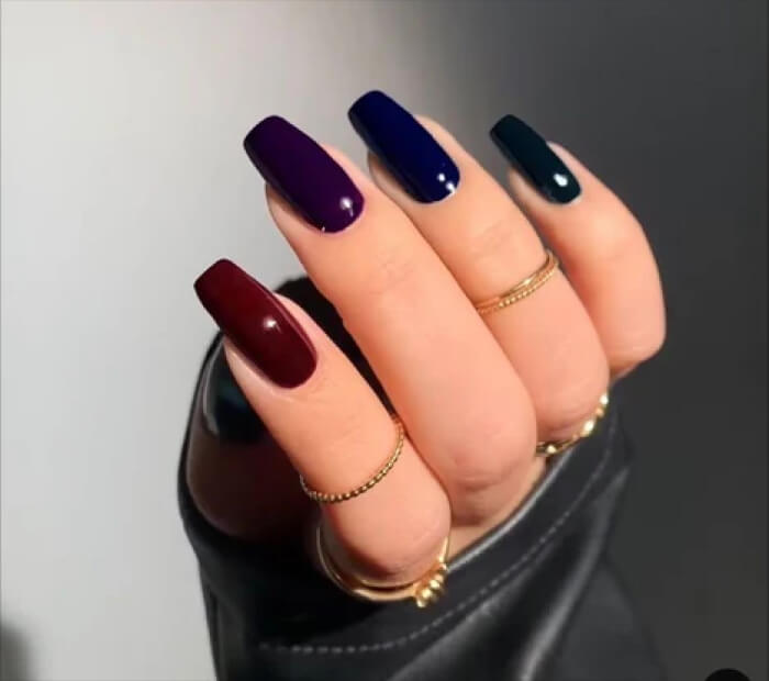 Satin-finished nails in jewel tones deliver a lavish radiance to Fall Wedding Nails For Guests. Colors like emerald, ruby, or sapphire present a regal visual, fitting for elegant autumn occasions. The gentle luster imparts depth, yielding a sophisticated yet striking manicure.
