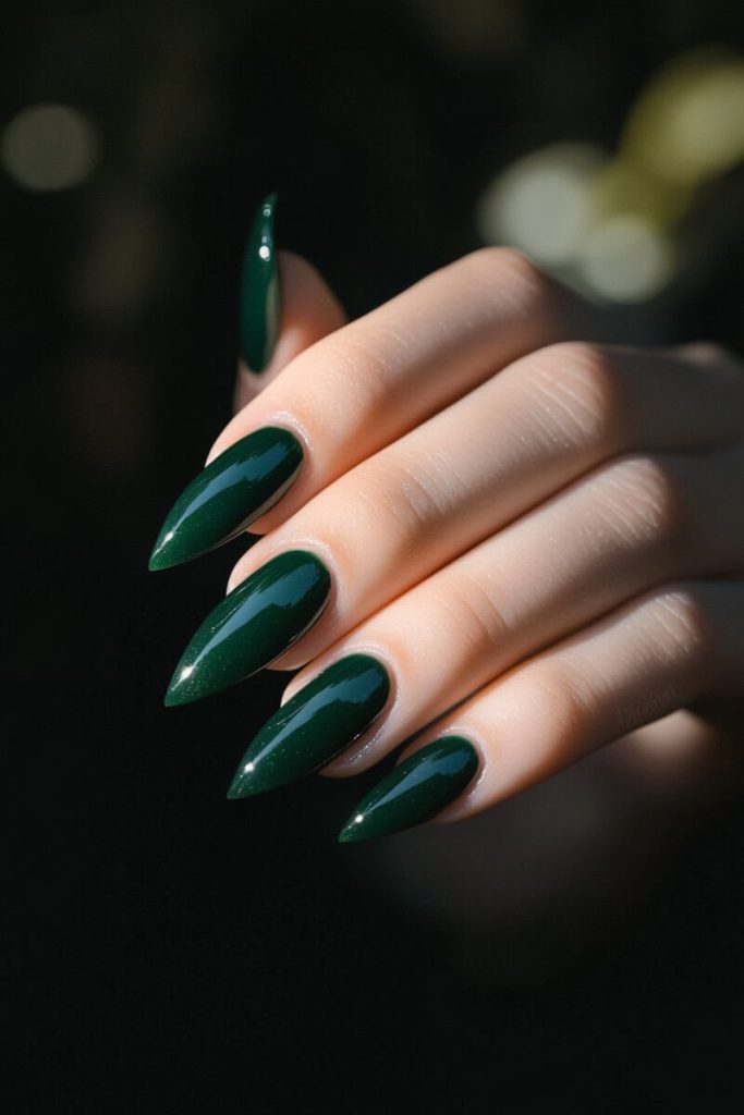 Forest green nails present a striking and earthy selection for Fall Wedding Nails For Guests. This profound, rich shade embodies the lush colors of autumn, adding a dramatic yet sophisticated edge to your appearance. Pair with golden accents for a lavish finish.