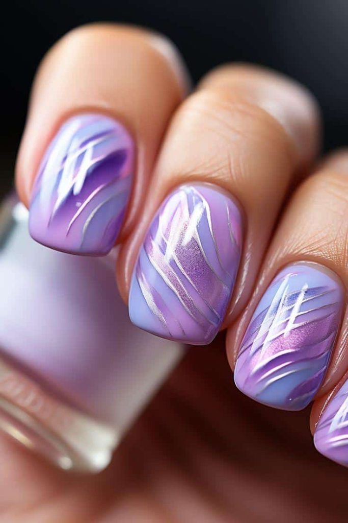 The Elegance of Marbled Lavender fuses sophistication and innovation for your summer square nails. The marbled design introduces a distinct and artistic touch.