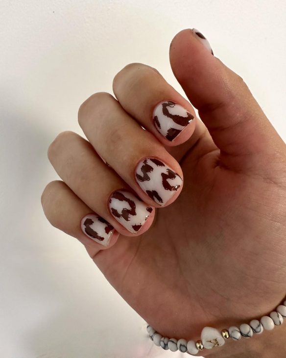 Chocolate Cow Print introduces a fun and distinctive variation to summer square nails. The cow print motif in rich chocolate shades is ideal for a lively and stylish appearance.