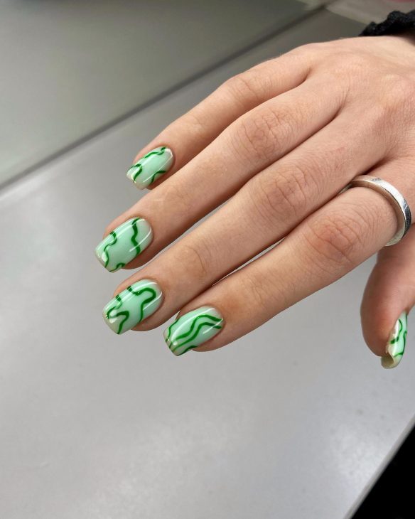 Refreshing Mint Waves deliver a cool and breezy style for summer square nails. The wavy mint designs bring to mind the refreshing essence of the ocean.