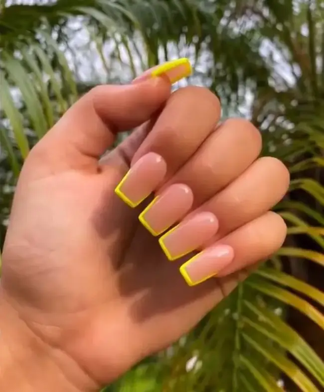 Brighten your summer square nails with Brilliant Yellow French tips. This lively and sunny shade introduces a joyful accent to your nails.