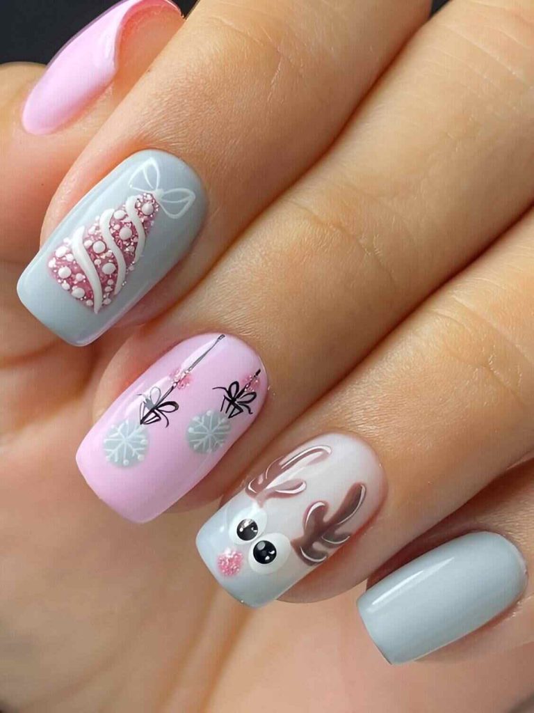 24. Short Pastel Christmas Nails