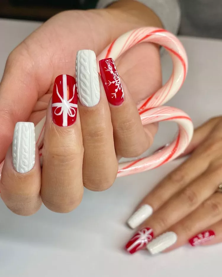 Sweater nails infuse warmth and comfort into your fingertips through textured patterns reminiscent of knitted winter sweaters. These nails are ideal for celebrating the holiday season elegantly, offering both coziness and charm. Perfect for those wishing to merge creativity and festivity in their Christmas nail styles.