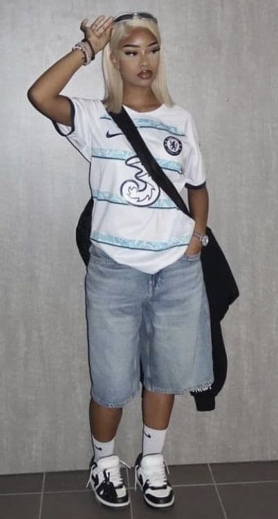Loose jorts exemplify Y2K Ensembles, offering a relaxed and trendy aesthetic reminiscent of the early 2000s. These baggy denim shorts were a staple in informal fashion and pair seamlessly with simple tees or cropped tops. Embrace the easy-going style with some fashionable sneakers or sandals.