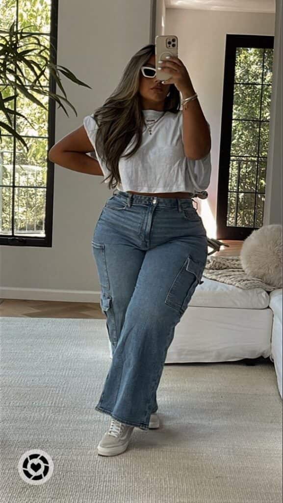 Tailored cargo pants and a cropped top create a fashionable Y2K Ensembles pairing that emphasizes both comfort and style. The fitted cargo pants complement the cropped top beautifully, providing a harmonious and flattering silhouette. Add some bold accessories to elevate the early 2000s aesthetic.