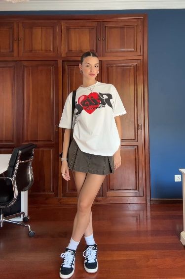 Platforms along with a short skirt create a defining Y2K Outfits pairing that embodies the fun and audacious spirit of the period. The elevated platforms provide height and confidence, while the mini skirt exudes a flirtatious and youthful essence. Pair it with a graphic t-shirt or cropped top for a complete nostalgic ensemble.
